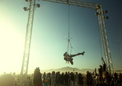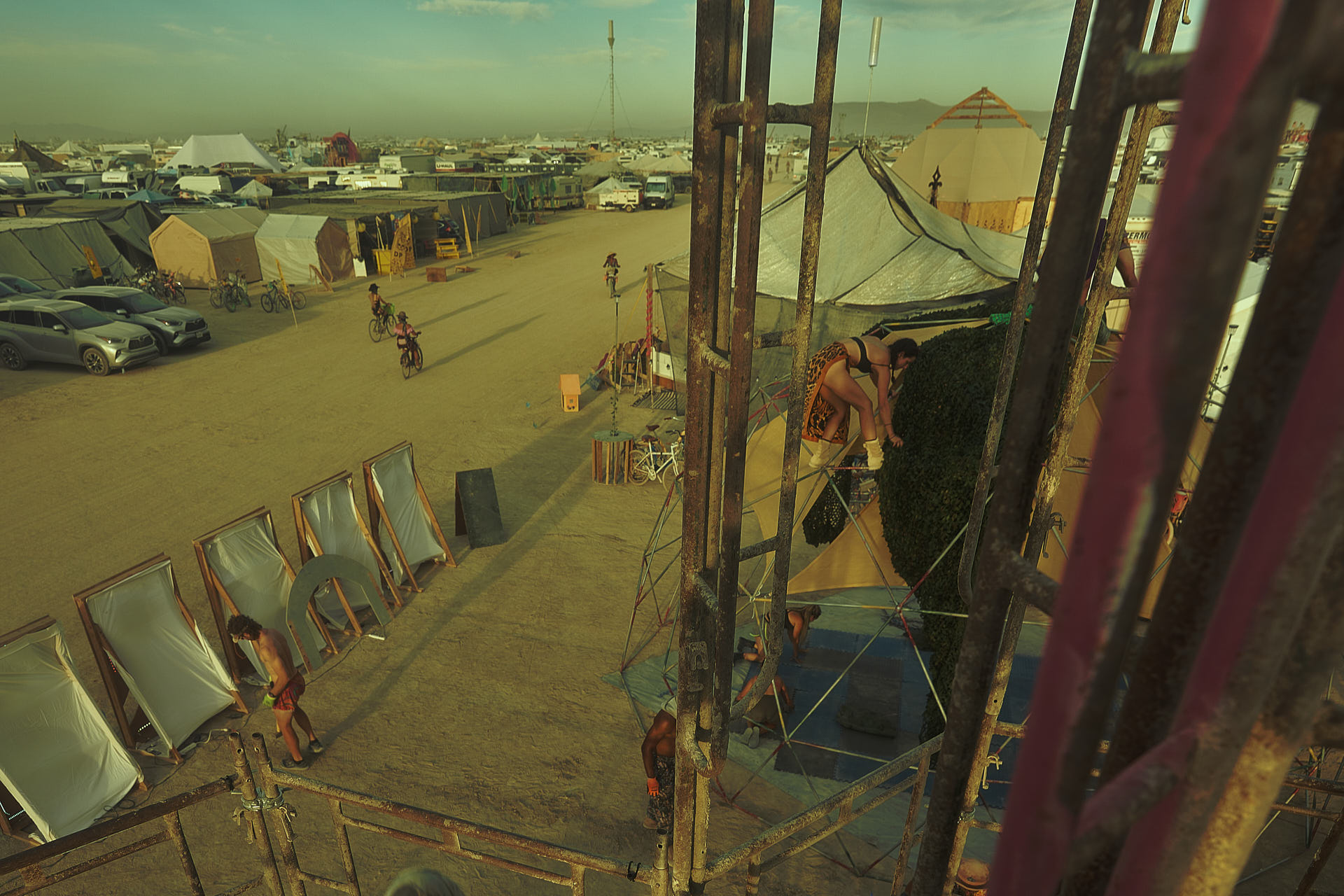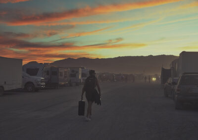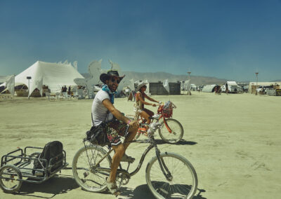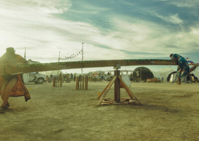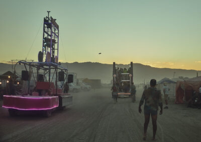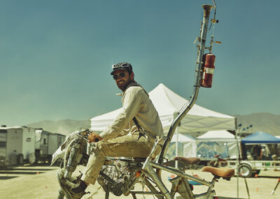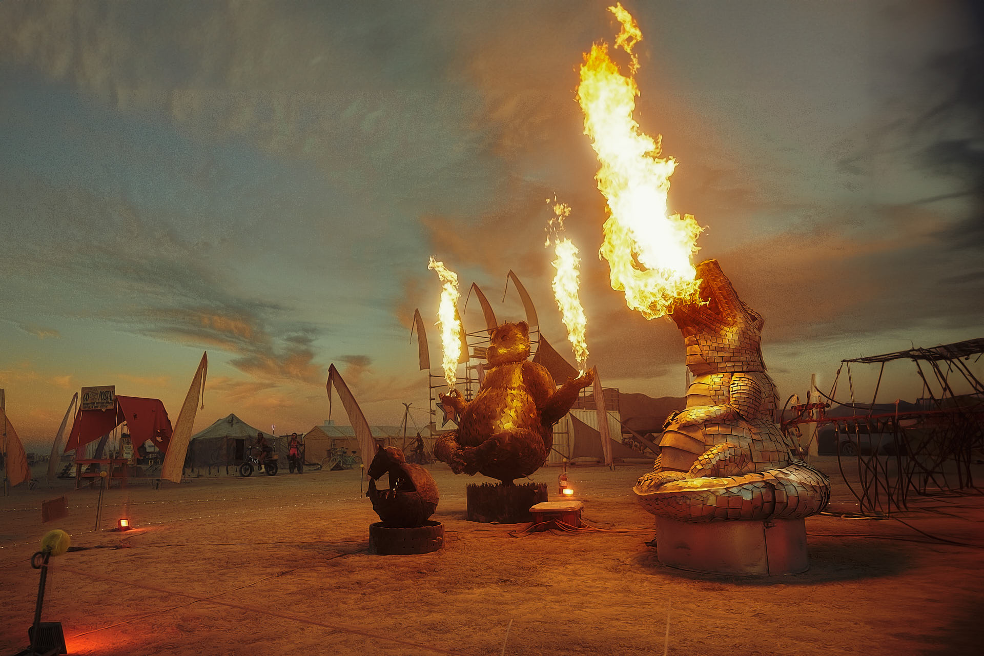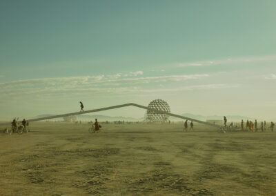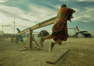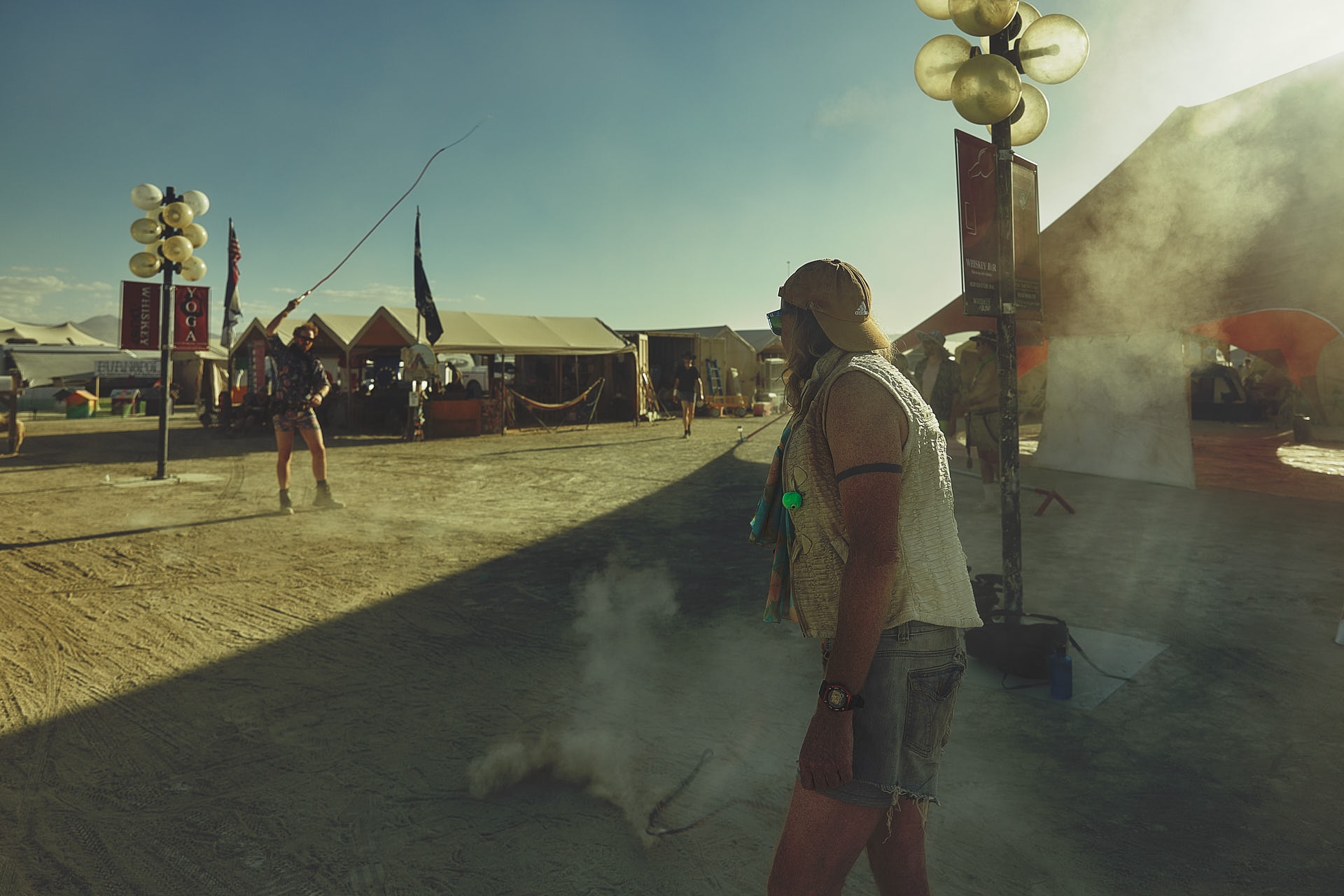 In this euphoric dusty city, there are citizens of Blackrock City who are aged kids in their playground realm. A tall, burning man centers the dusty town and holds the key to your rusty map.