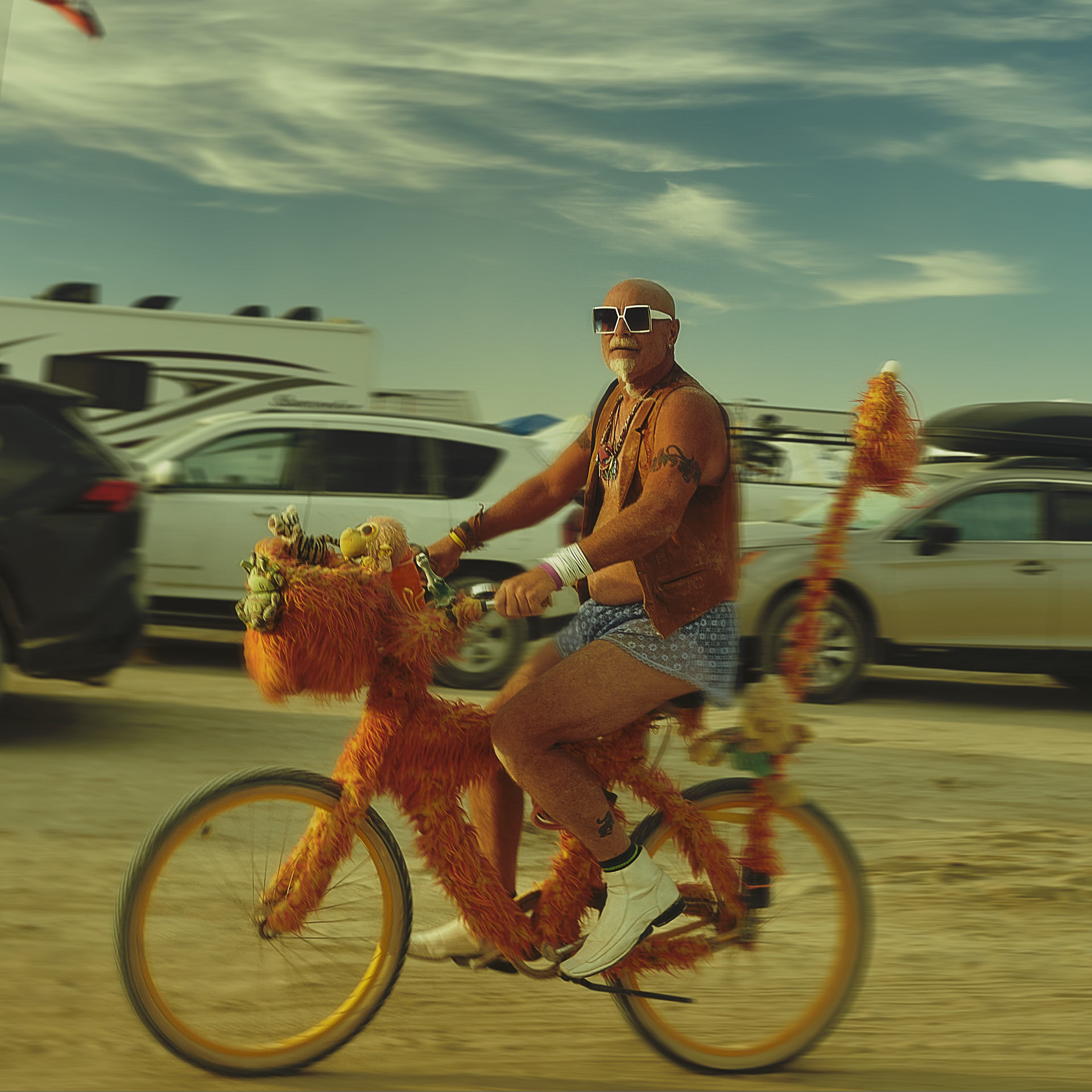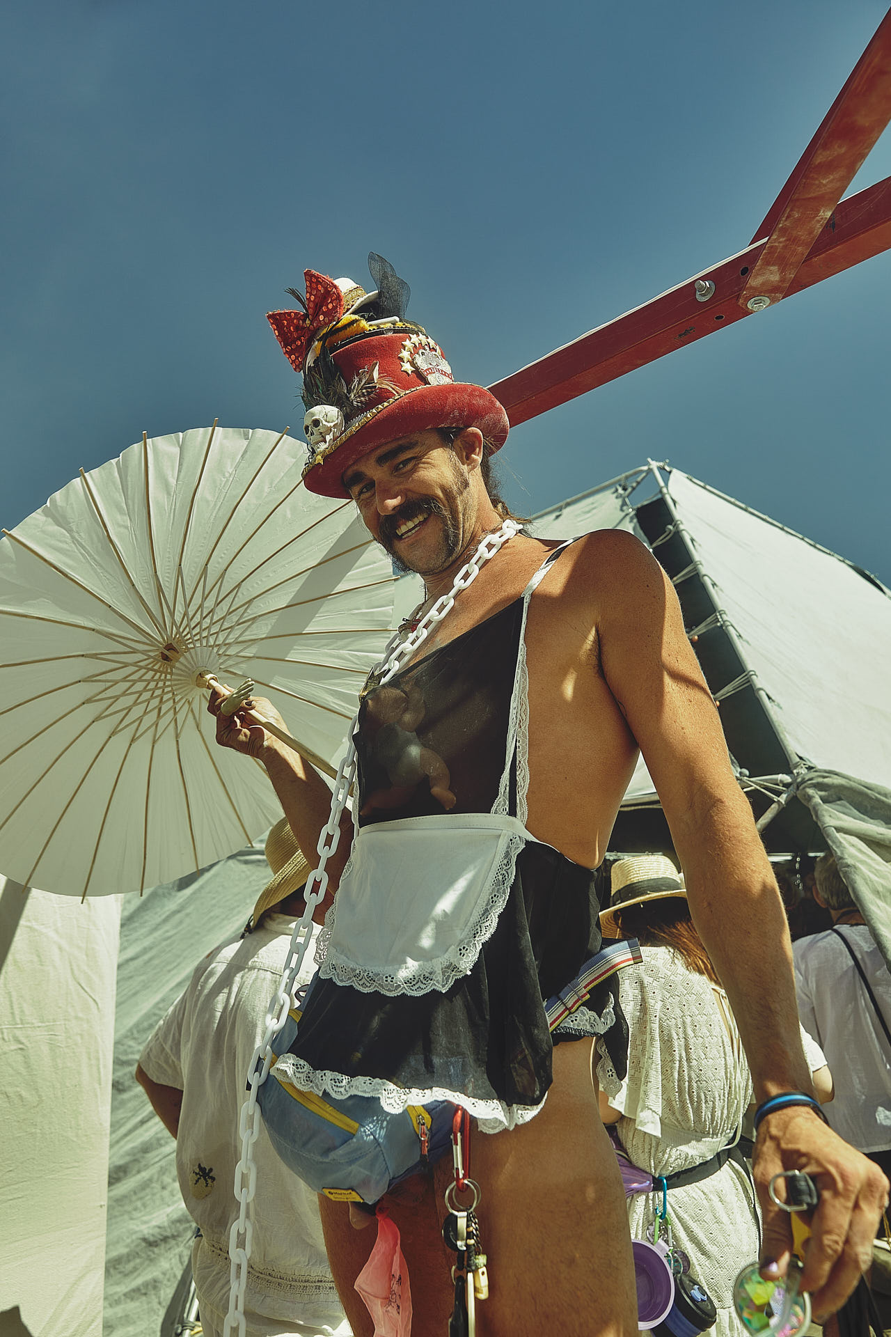 Do you remember the last time you made friends from over-climbing an art installation? And this friend that you just met is not looking so ordinary. He is a cyberpunk cowboy! He is not just dressing up like a cyberpunk cowboy; he has always been a cyberpunk cowboy, and that week, he expressed it because he felt safe and at home.